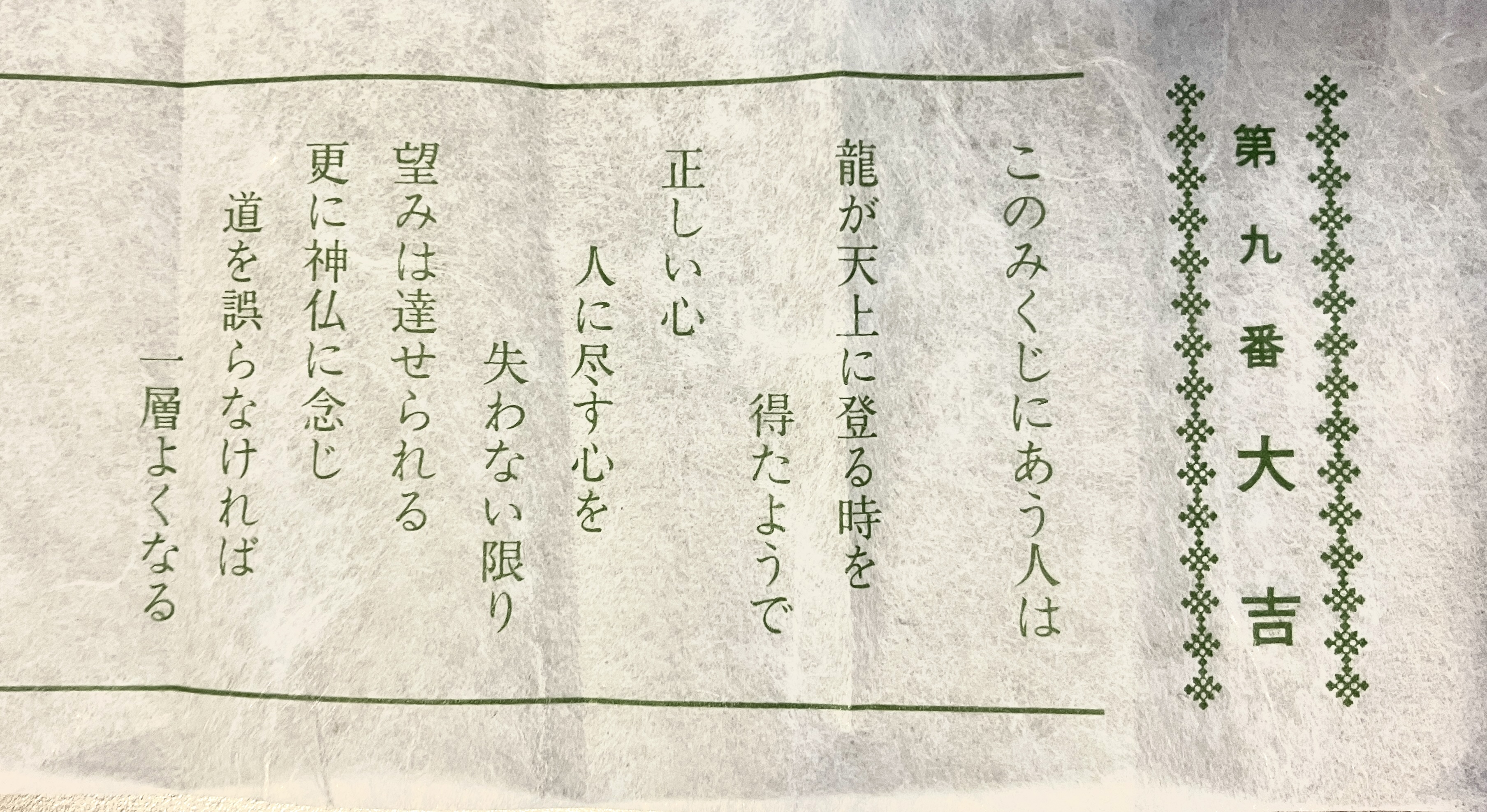 私はおみくじを引くと、小吉とか末吉しか見たことないのですが、大吉かどうかよりも「ちゃんと見てるぞ」と言っていただけたようで、すごくありがたかったです。
