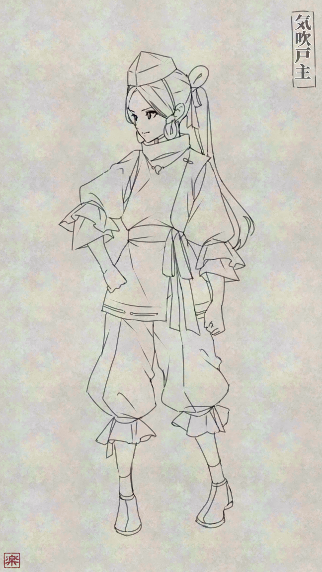 その上で、気吹戸主は老獪な仙人のようなイメージの神様として描こうと思っていましたが、その設定では不思議と作業が進まず、何をやってもしっくり来ませんでした。
