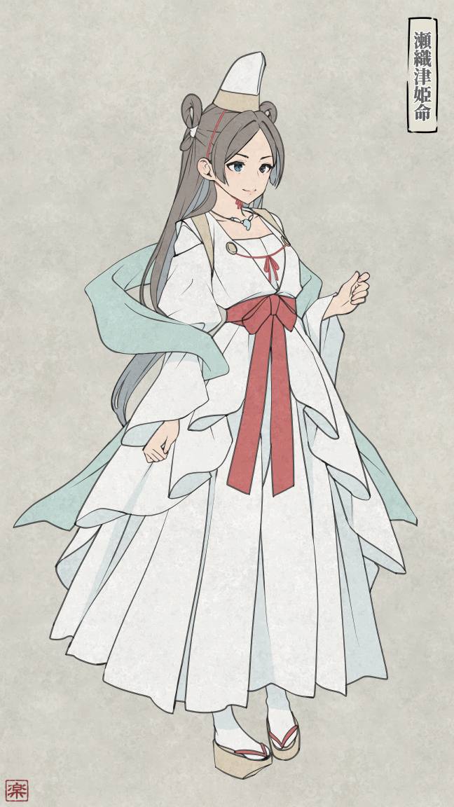 アニメ調の「セオリツ姫命」とはイメージが違うのですが、セオリツ姫様も独特の可愛らしさがあるので、コスチュームを分けて別キャラ(?)として描き分けることにしました。