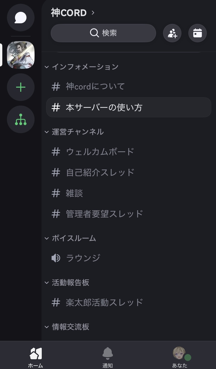 ここでは、スマホ版Discordから見た場合の「神CORD」の解説をします。