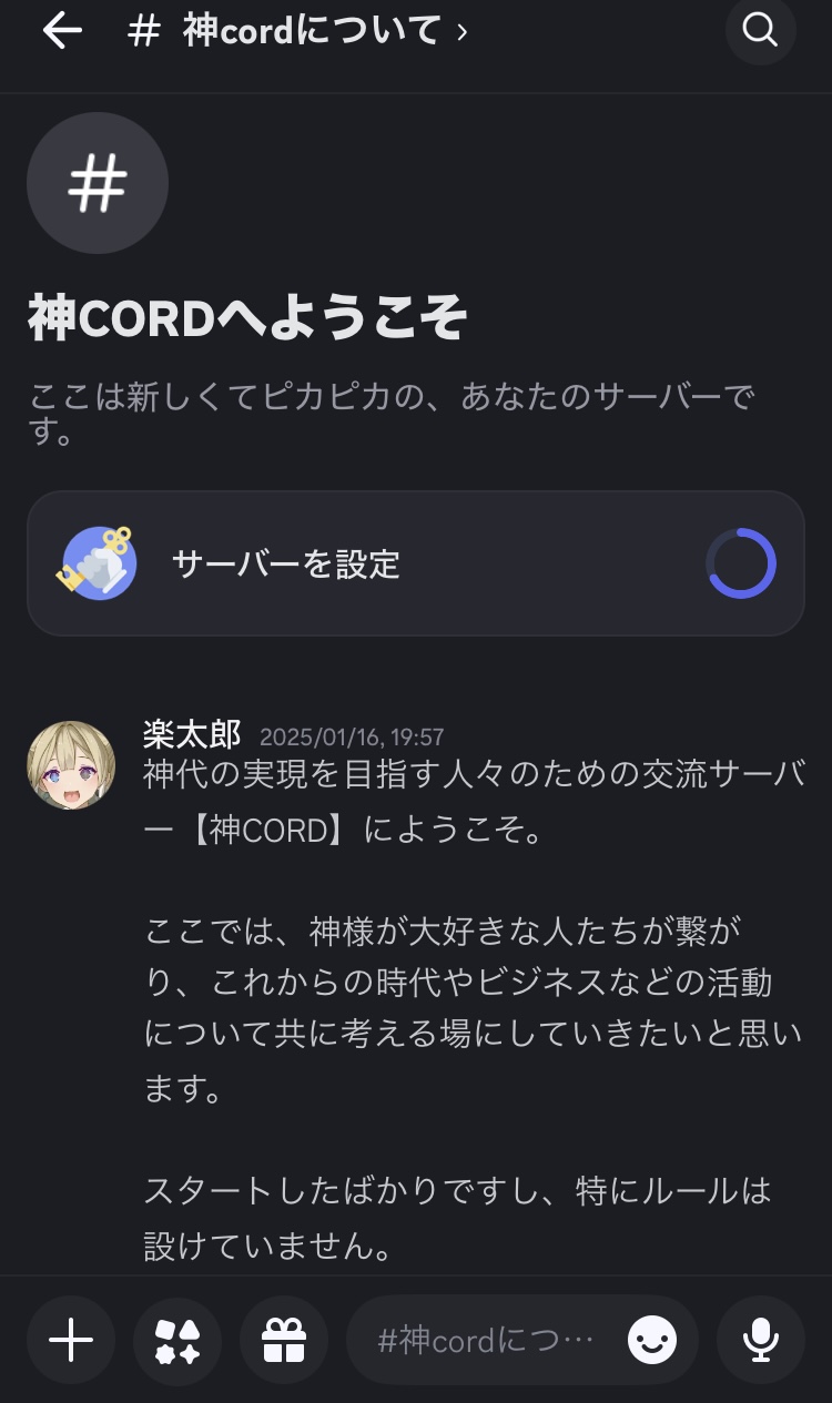 先日、神代を作るためのDiscordサーバー「神CORD」をオープンしましたが、今回は神CORDの仕様についてご説明したいと思います。