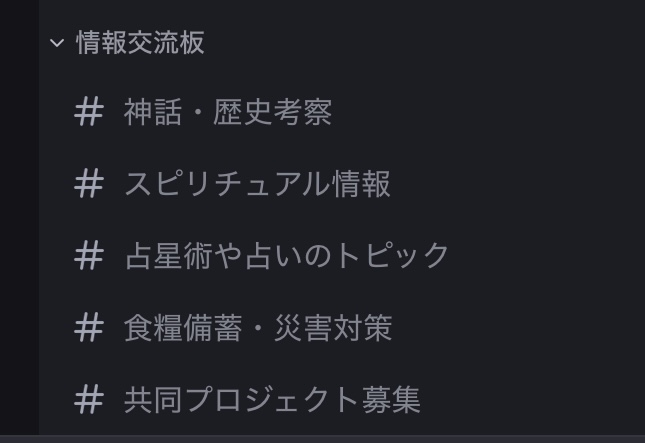 チャンネルの階層構造は一番上のスクショの通りなのですが、「情報交流板」が見切れてしまっているので、現在暫定的なチャンネルをご紹介します。