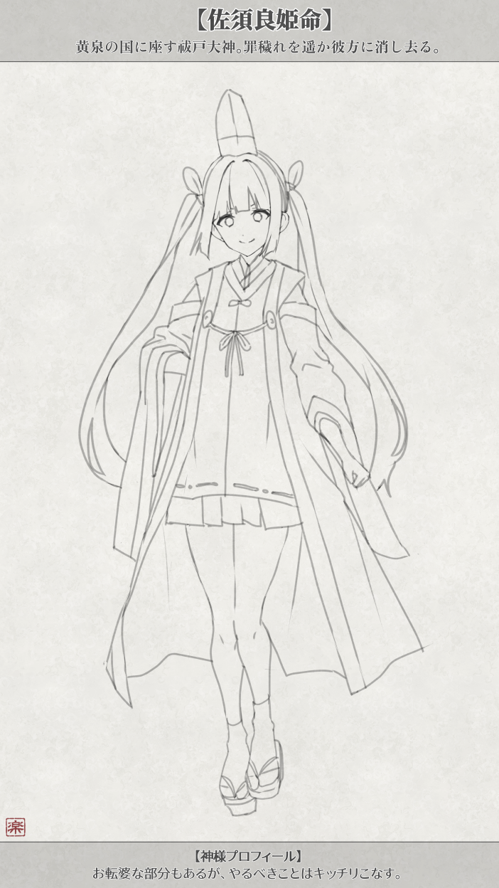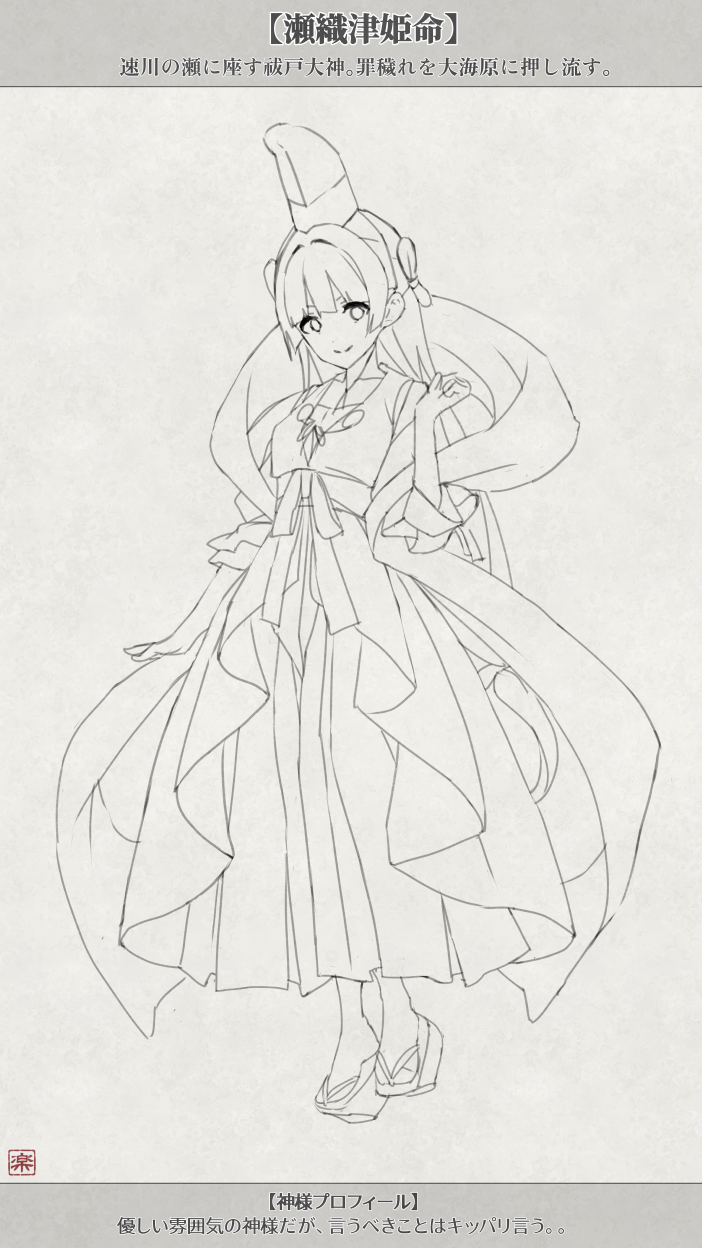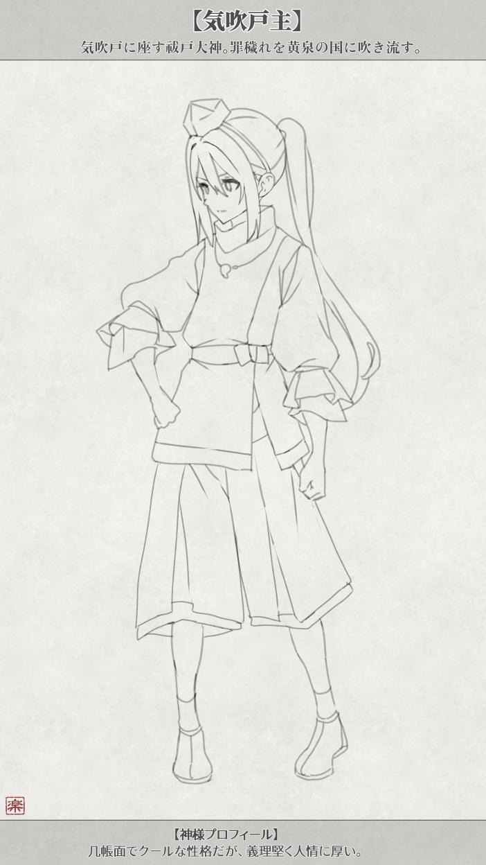 今は、祓戸大神四柱の立ち絵を取りまとめて「登場神プロフィール」みたいな個別ページを作ろうと思い、とりあえずラフ画を流用して仮でそれっぽく作ってみました。